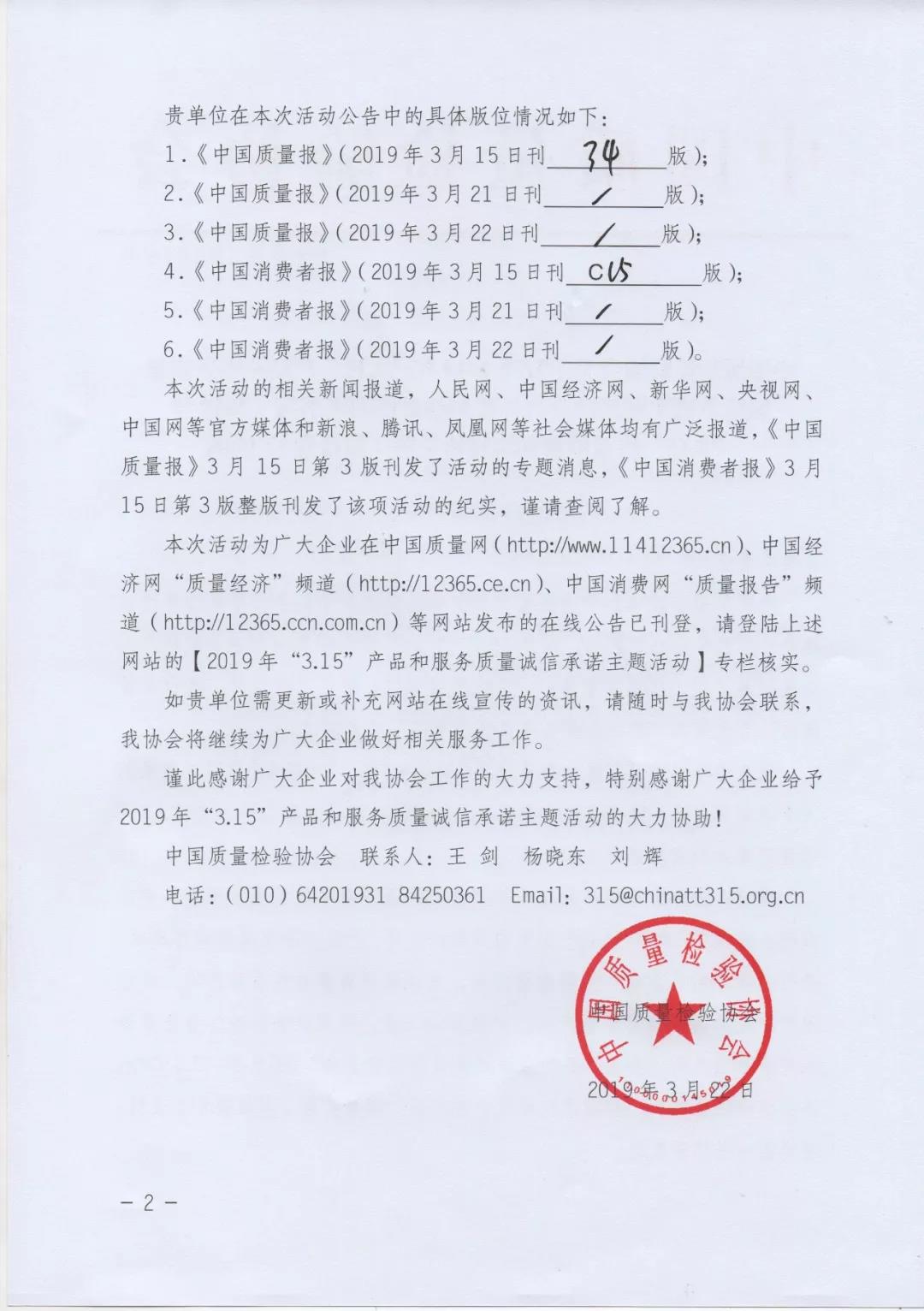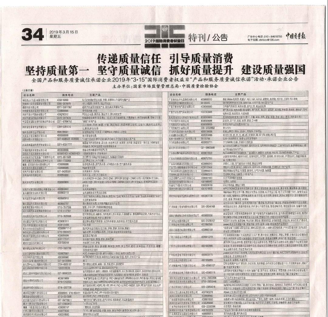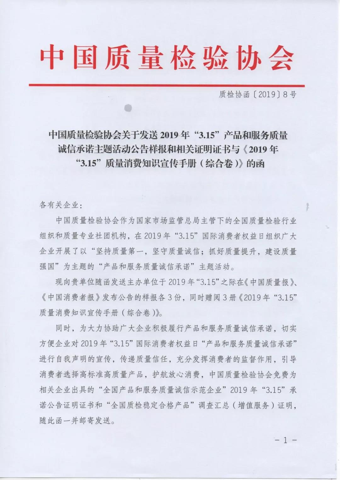 2019年“3.15”之際,中國質量檢驗協會(以下簡稱質檢協會)攜手華為、格力、阿里、京東、海爾、小米、道騏科技有限公司等近2000家全國產品和服務質量誠信示范企業組織開展產品和服務質量誠信承諾主題活動,引導企業主動發布產品和服務質量標準的自我聲明,督促企業踐行產品和服務質量誠信承諾,積極倡導提高供給質量,引領企業全面提升產品和服務質量,推動質量社會共治,推進中國發展邁入質量時代。
