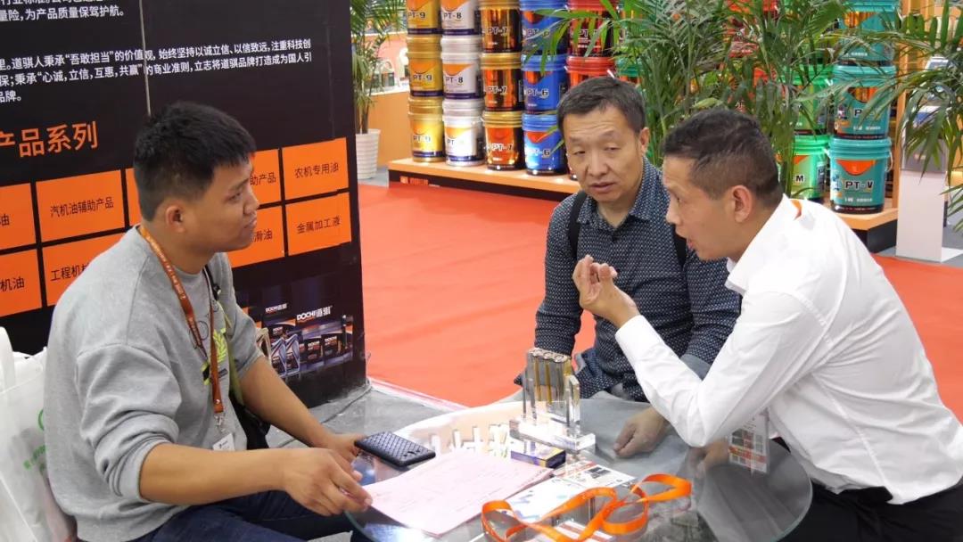 道騏潤滑油西安國際會展中心位于B1號館T-15展位。在道騏潤滑油的特裝展位上熱鬧非凡,洽談嘉賓絡繹不絕。