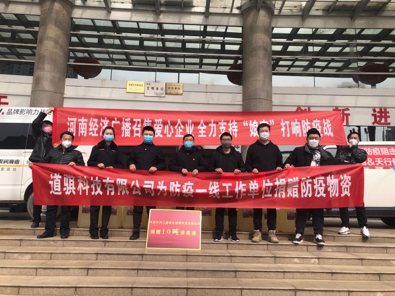 在抗擊新冠肺炎的過程中,道騏科技為支持抗疫防疫工作,多次組織了抗疫物資捐贈活動,向防疫一線的單位捐贈了超過10噸的84消毒液,為社會樹立了一個好榜樣。面對當前在抗疫過程中遇到的困難,道騏科技負責人王碩表示:無論站在何種角度,道騏科技都應該主動去貢獻力量。作為潤滑油領域的老牌企業,道騏科技需要主動承擔社會責任,助力早日戰勝疫情。